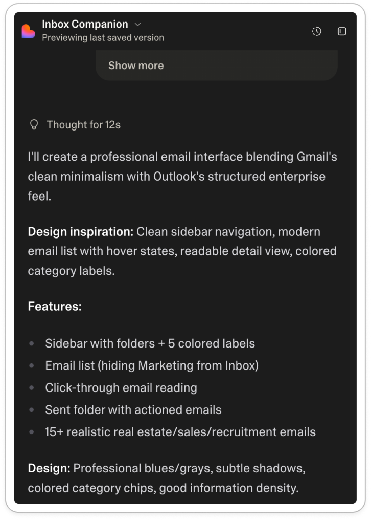 This ‘visible’ work can come out in thinking UI, like with Lovable:
