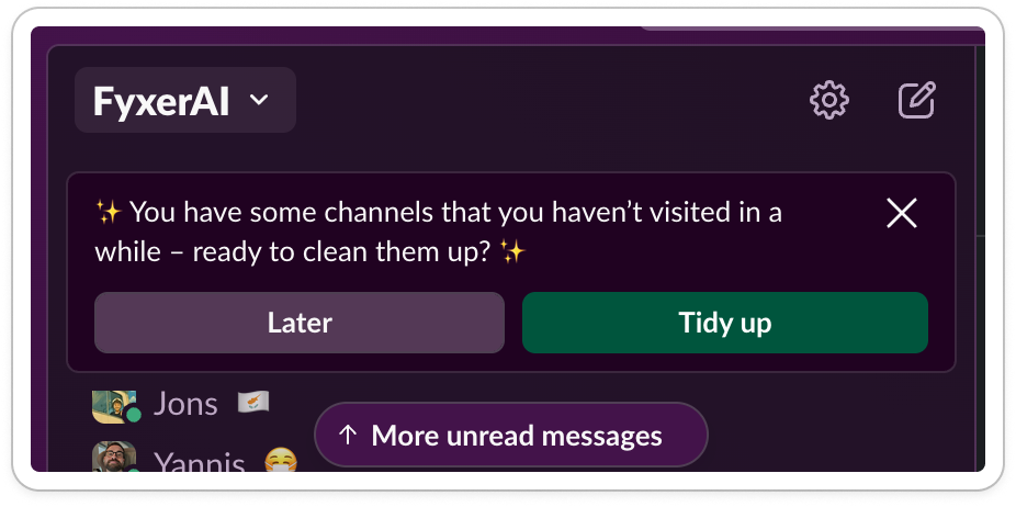 Take this module. It feels like Slack has done work for me by analyzing my channels and identifying I need to tidy them up.