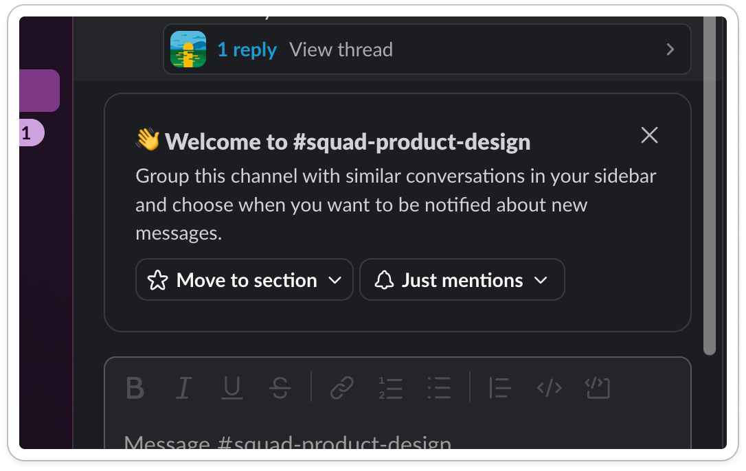 Take this module, which asks me to use Slack’s grouping feature as I join a new channel.