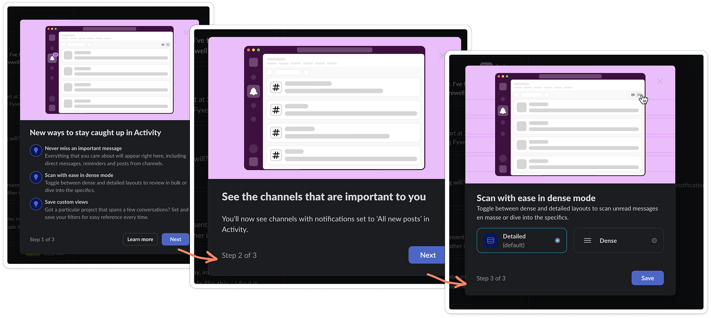 My favorite thing across all these examples is the positioning. Slack doesn’t tell you you’ve failed, it’s assuming that confusion is inevitable.
