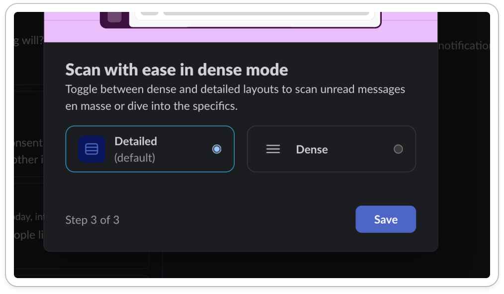 Slack introduced me to a new feature ‘dense mode’ through a popup
